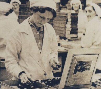 photographer unknown, Hand-packing chocolate assortments at Rowntree & Co., York, undated, personal collection (courtesy of Joe Dickinson)