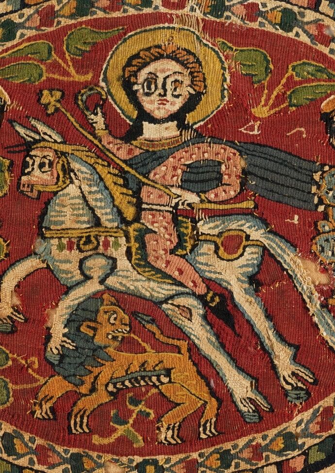 One of the most fascinating groups of ancient textiles available for study by modern-day scholars, are the tapestry-woven fragments of the Coptic Period in Egypt, from the late-3rd to the mid-7th centuries. This era – after the Pharoahs and before the Muslim rulers – saw an explosion of figurative designs and portraits, characterised by the intense gaze and large eyes of those represented.