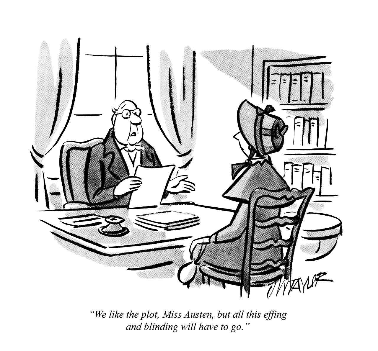 Image: J W (John Whitfield) Taylor, "We like the plot, Miss Austen, but all this effing and blinding will have to go." published in December 1982 edition of Punch magazine © Punch Limited, 1982