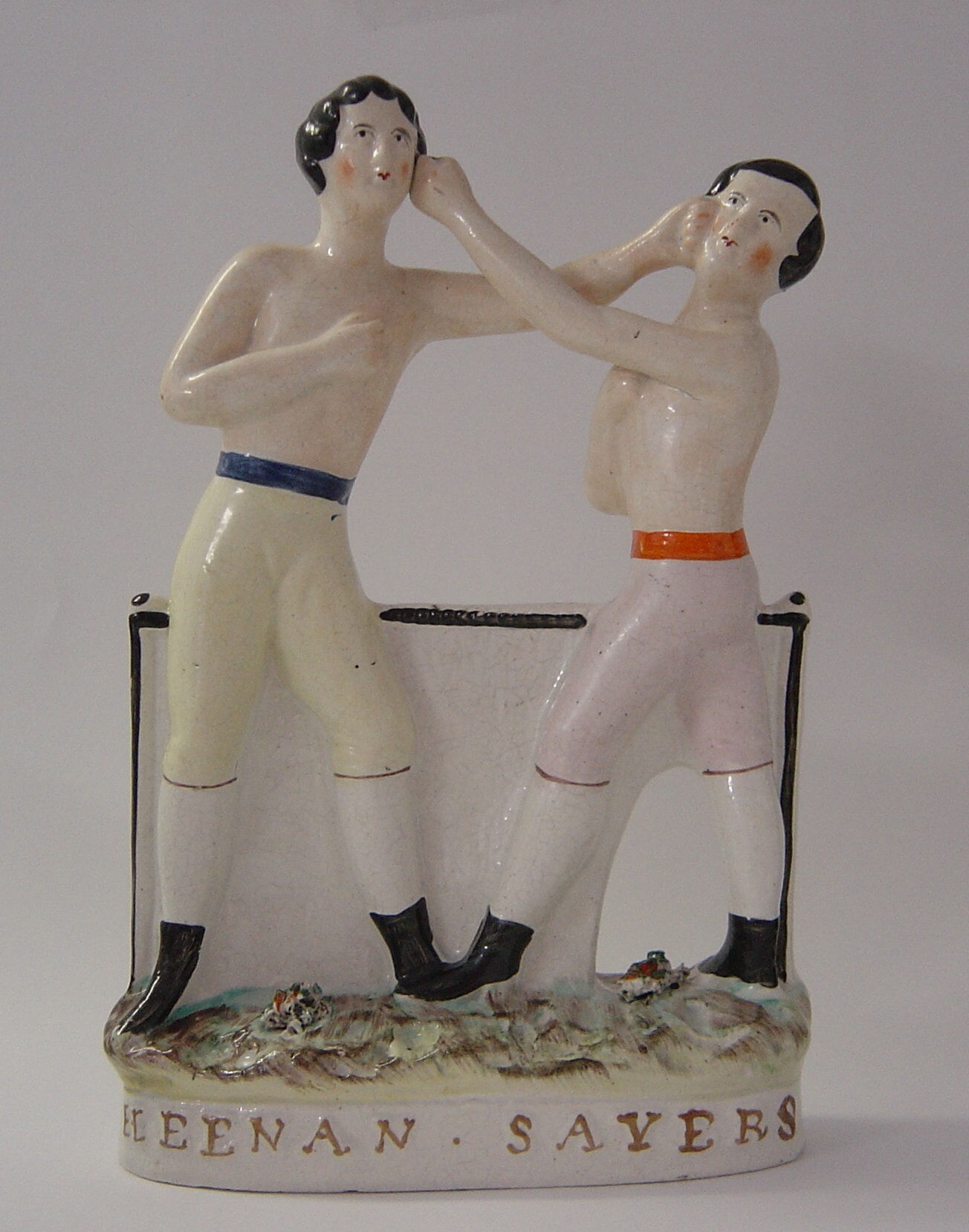 Image | Staffordshire potteries district, Staffordshire boxers (John Carmel Heenan (USA) / Tom Sawyers (England), England, circa 1860 earthenware, glazed | 235 x 60 x 150 mm The Johnston Collection (Foundation Collection, A0259-1989)