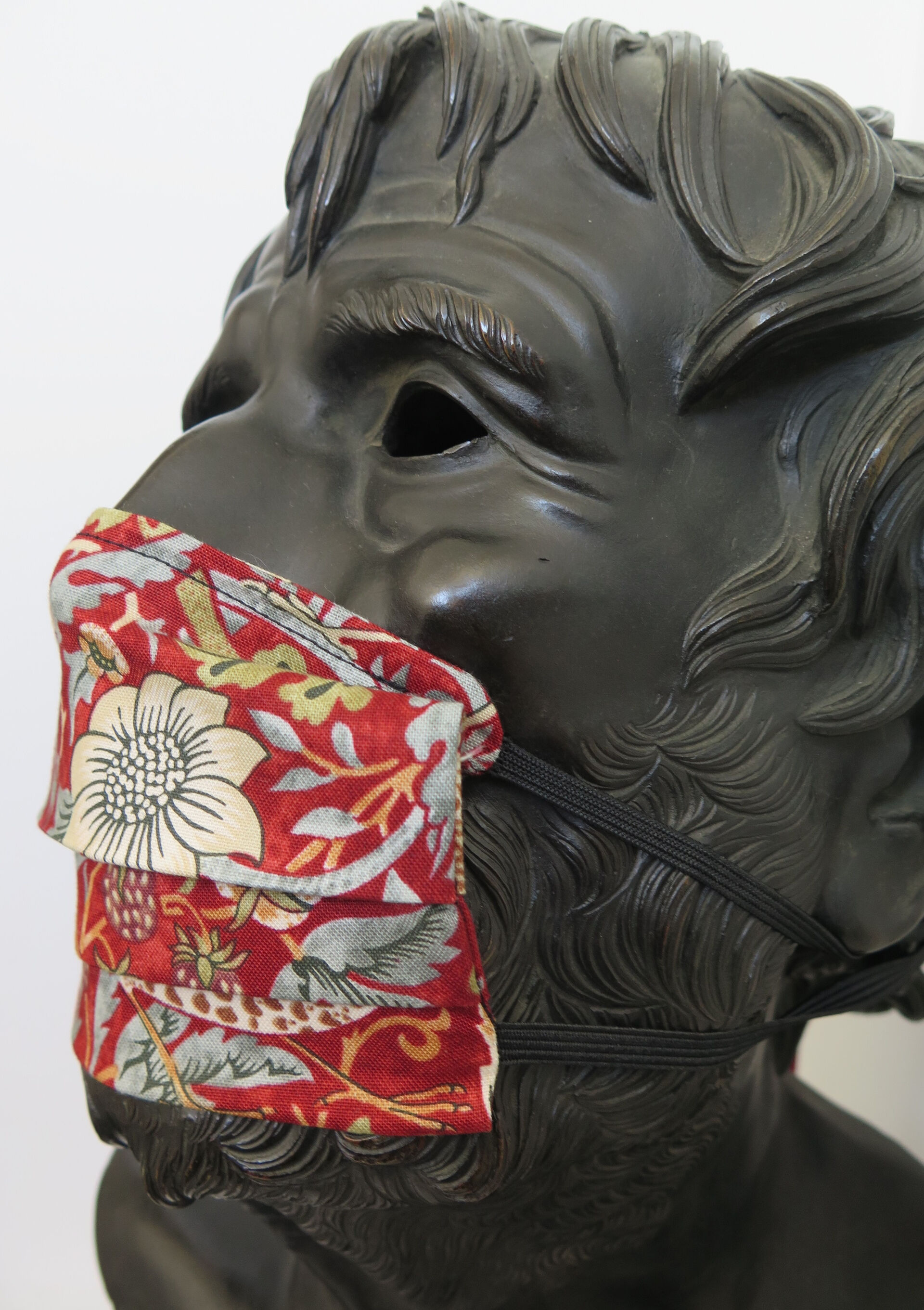 This reusable fabric face covering won’t mask your appreciation of art.    These face coverings feature enduring and iconic prints from the Liberty of London design studio. The breathable and comfortable double-sided 100% Liberty cotton has been reinforced with an inner soft polyester-elastane mix creating 3 layers. Fabric folds expand to cover your nose and mouth, with elastic ear straps to keep the mask secure. As reusable cloth masks should be washed each day after use, it's a good idea to have a couple on hand, so you will also have a clean one available. Individually hand-made and hand-crafted in Melbourne especially for The Johnston Collection  We recommend washing your facemask after each use, and only wearing for a maximum of 8 hours at a time. Wash in warm/hot soapy water.     Please be advised that this is not certified PPE or a medical device. Non-sterile and non-surgical face masks are meant to supplement, not replace, other safety measures and good hygiene outcomes such as regular handwashing and keeping a 1.5m distance apart from others.    NB | Please choose carefully and also note that due to hygiene reasons, we are unable to offer returns for face coverings, unless they are faulty. NB | Some variations will apply to these products as they are all individually made and hand-crafted.