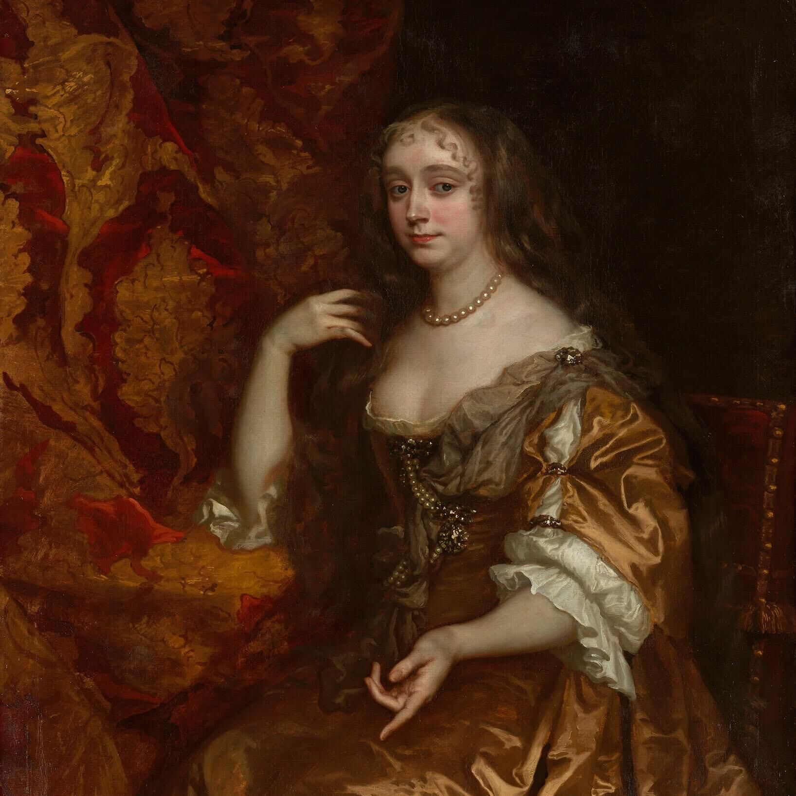 Image: Sir Peter Lely (1618-80). Portrait of Anne Hyde, Duchess of York (1637-71) (detail) . c.1662, oil on canvas, Collection of HM King Charles III.