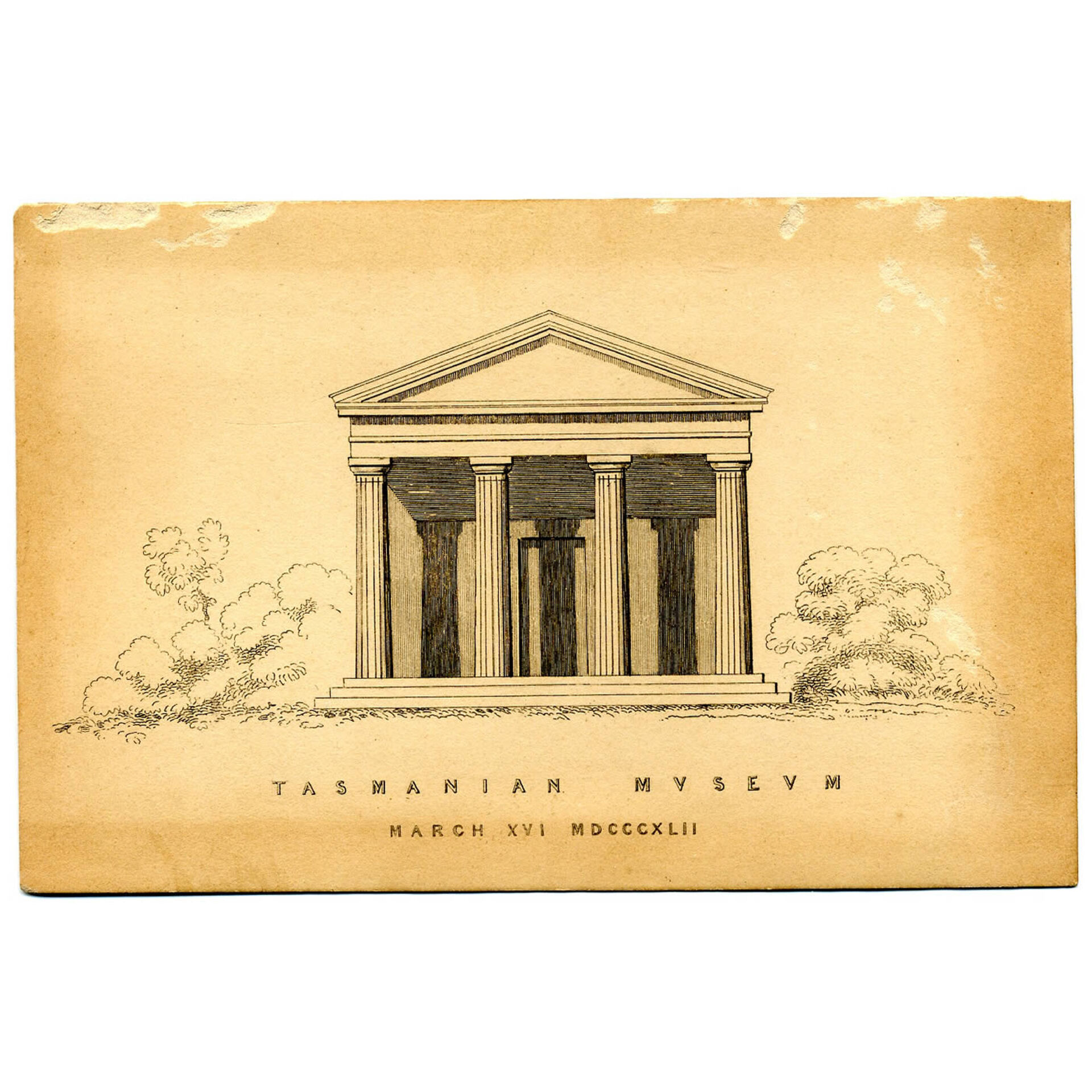 Thomas Bock, [Invitation to opening of the] Franklin Museum, March XVI MDCCCXLII (1842) Etching, 1842, UTAS.