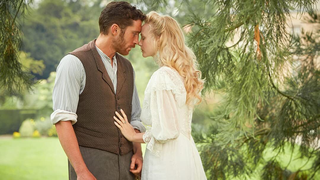 Image| still from a The Go-Between (2015 TV movie) directed by Pete Travis and featuring Joanna Vanderham as the young Marian Maudsley and Ben Batt as Ted Burgess/Hugh Edward Winlove, 11th Viscount Trimingham