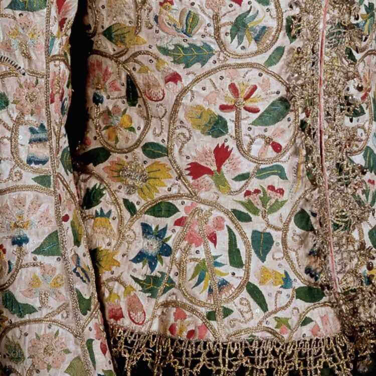 detail Jacket in the Burrell Collection in Glasgow. circa 1615-18. There is a jacket in the Bath Fashion Museum with an identical embroidery design.